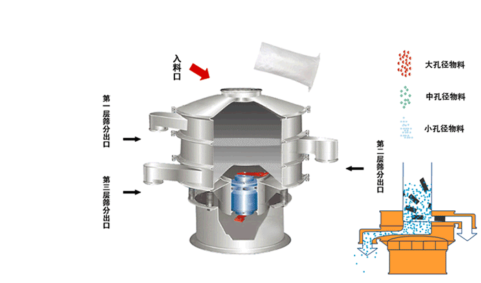 600型兩層碳鋼振動(dòng)篩工作原理: