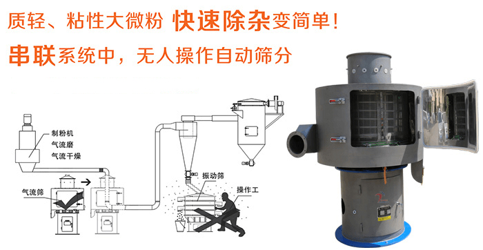 立式氣流篩工作原理以及配套設(shè)備展示圖