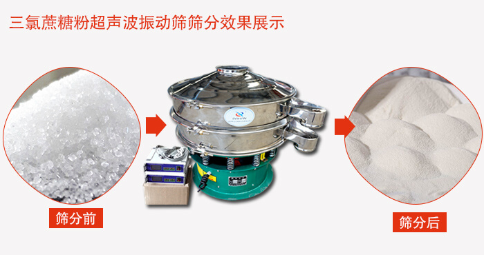 三氯蔗糖粉超聲波振動(dòng)篩:由于三氯蔗糖粉屬于食品類(lèi)的一種并且伴有一定的糖粉所以,應(yīng)該選擇不銹鋼材質(zhì)的超聲波振動(dòng)篩進(jìn)行篩分。