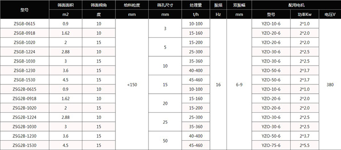 礦用振動篩結(jié)構(gòu)和技術(shù)參數(shù)表