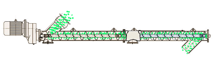 3、輸送過程:由于螺旋的旋轉(zhuǎn)運(yùn)動,物料被連續(xù)地推送和輸送,沿著輸送機(jī)的長度方向逐步向出料口輸送。